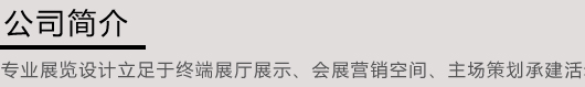 我司是一家致力于高端展臺、展館、展廳、專賣店設計、制作和搭建、施工于一體的專業性展覽公司,同時還被全國各個大型展會認證為指定特裝搭建單位,公司在國內外擁有一批高素質人才,擁有專業的設計團隊,創意設計團隊凝聚力強大,追蹤服務人員均達80人以上,我們擁有專業的技能,豐富的經驗,貼心的服務,我們多年服務各大展會及中國名展廣交會設計搭建、家具展展臺搭建,建材展展臺搭建,服裝展展覽制作,照明展展臺搭建、家電博覽會搭建等展覽設計搭建,用新穎的展覽設計和過硬的質量得到了國內外客戶的一致好評。公司總部位于廣州琶洲展館附近,展覽工廠面積達5000多平方米,在廣州、上海、北京等地均設有制作基地和服務網點,展覽工程管理系統全程跟進,為客戶提供一體化綜合展示解決方案,打造高品質的營銷型展臺。公司以專業化、集團化、國際化為標準,為提升客戶品牌而不懈努力... >>>更多